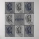 The Eight Ears Graphic design has a retro quality, as if it came from a medical text book from the 1950s. Each of the eight ear drawings is centered on a rectangle shape. The dark blue ears are on a dark grey rectangle and the grey ears are on a light grey rectangle. The center rectangle has the word ear in a script font. The Eight Ears design would be ideal as artwork or on a promotional item in any ear, nose and throat doctor's office.