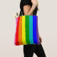 All-over-print tote bag with eight stripe lesbian, gay, bisexual, transgender (LGBT) pride rainbow pattern with the colors of pink, red, orange, yellow, green, aqua, blue, and purple. Customizable.