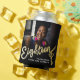 Eighteen gold colored style effect script text with key to the door black can cooler. Personalize these stubby holders with two photos of your birthday girl turning 18, one on each side (for past and present), plus add your own name or message. Ideal for a 18th birthday party or surprise girls eighteen years event. Other years and matching items are available. © Original design by Sarah Trett for www.mylittleeden.com on Zazzle.