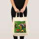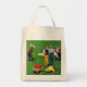 The printing came out very well, better than I had anticipated. The natural color fabric is sturdy with strong seams and comfortable handles. This tote fits easily over my shoulder. As it is filled, the bottom flattens out--very cool! I would buy this product again. This grocery tote holds a lot of groceries! The image quality was very good. The colors were a little darker than I had expected. The darkness may have been due to printing on a natural color fabric rather than on white. The cat design is attractively centered on the tote. The spirit of the design is very lively, just as it appears on the Zazzle website.