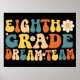 Retro groovy 8th eighth grade dream team funny teacher and student tee for kids, girls, boys, women and men. Awesome matching back to school outfit for dream team 8th eighth grade teachers and students. Cute groovy tee to start your 8th grade school year. Teacher and student funny dream team groovy matching apparel... Great 8th eighth grade appreciation present for dad, mom, son, daughter, friend, coworker, sister, brother, student and teacher. Grab it for Back to school, first day of school, 100 days of school..