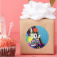 Eighties theme with sunglasses, cassette tape, paint splash, and bold color geometric prints thank you sticker.