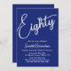 Eighty Modern Script Navy Blue 80th Birthday Party Invitation