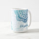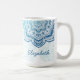 The Eira Mandala 15 oz. Personalized mug with its Arctic glacier-inspired gradient of bright aqua to deep blue, adds a meditative touch to your morning routine or any time you need that sustaining cup of coffee, tea, or hot chocolate. This extra-large size is especially cosy to wrap your hands around. Would also make a thoughtful gift for your favorite yoga teacher. Available in an 11 oz. version as well.