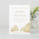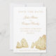 This destination wedding Save the date features a drawing of the famous arch at Lands End in Cabo San Lucas, Mexico at the tip of the Baja peninsula. . All the important wedding details can be personalized. Colors include a golden sepia two tone graphic with coordinating text.