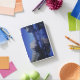 I was super excited when I got my cover in. It is attached by a magnet across the edge. I don’t think it will be very protective but it is very cute. I’m going to keep my iPad in a sleeve and use this face cover while I have it out. It folds to create a tilt for better viewing and to keep the iPad at a slight angle for typing. The colors are bright and it is fun. I’ve really enjoyed it. The personalization looks like amazing. It is the same color as the picture and is the same brightness. Well done! Very nice.