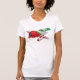 The material is a great quality that is hard to find with most tee shirts. Fabric was not see-through or thin at all, but was also very soft and comfortable. The shirt description states that it runs a little small, so I sized up one size for a perfect fit! I would definitely buy this type of tee shirt again because I love the fit and high quality fabric that I cannot find anywhere else. The printing was perfect and just as pictured. Loved the cute quote and really enjoy the tee in both the quality and design. I love quirky typography designs and funny quotes and I am extremely pleased with the overall quality and value I get at Zazzle!