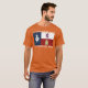 My 11 yo wore adult XL (5’7” 165#). The 8yo is small framed. She wore adult small and tied it in the back. Grandma wore adult large with long sleeve shirt underneath. Tall girl adult medium. Dark haired male adult large. Good quality dark Heather gray, Gildan brand shirt. -it was next up from basic choice and cost about $20 per shirt. Not too thick or thin. Washed and dried well, no major shrinkage. Not see-through. Can wear a bra under it fine. Screen print is just as shown and well done, front and back.