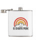 Well made flask, a little better than I had expected. Flask came in clear plastic box which gave it a nice presentation when I took it out of the zazzle packaging. Image is not printed on flask but on sticker. Don't know how this will hold up I haven't used it yet. This would make a Great gift! I plan to purchase more for friends! Cheers. I thought a little brighter than computer. Very crisp, writing wasn't