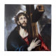 El Greco Christ Carrying The Cross tile. Oil Painting on Canvas 1578. El Greco created some of the most famous paintings of Jesus. Christ Carrying the Cross is one of the most recognized Christian paintings in the world. The artist depicts Christ wearing a blue and red robe with his head adorned with a crown of thorns. The cross is hoisted over his left shoulders as clouds break in the background. A great gift for fans of El Greco, Jesus Christ, Easter, catholic art, and religious paintings.
