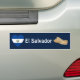 Salvadoran heart-shaped flag plus map with editable text on a durable 4mil thick vinyl bumper sticker.