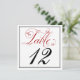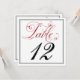 Ideal for party and wedding receptions, these Elaborate Red, Black and White Calligraphy Script Table Number Cards are simple and sophisticated, and will coordinate with many different styles of flowers and decor. Great choice for a Christmas holiday wedding.
