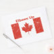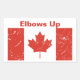 This is a red and white sticker decorated with the Canadian flag, that says Elbows Up. It's a great way for anyone to show support for Canada!
