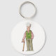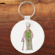An elderly man standing leaning on a walking stick. This design looks really effective on these Keychain