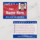 Eye-catching political campaign palm / push card with photo and a spot for 5 bullet points on the back. Bullet points can be "customized" as needed to add/remove, re-size, etc.