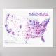 Here is a pointillist look at the electorate of the United States. Blue dots weigh in for Obama and Red dots weigh in for Romney. In the end, it is not so much a red and blue nation but a purple one. The density of the votes shows not just how people voted, but where, giving an at-a-glance view of the dispersion of American voters. Get your poly-nerd on with this poster and adorn your wall with an image that is a uniter, not a divider!