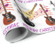 Guitar Music Theme. Illustrated drawings of an acoustic guitar and two electric guitars are featured in various positions, overtop of colorful music notes in orange, purple and gray, and a curving musical staff. Merry Christmas is written at the bottom in purple. The musical instruments, music symbols and holiday wording is then repeated as a large allover music pattern. Wording can be changed(CAPS look best) or deleted to leave plain. Text color can be changed using Customize and the color block, and click Done. Musicians, band member, rockers, guitarist, or any music lover will be a perfect match for this design. Note - the images are large and fun.