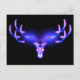 A neon-like, purple and blue fractal image resembling the head of an antlered animal on a dark background.