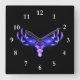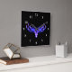 A neon-like, purple and blue fractal image resembling the head of an antlered animal on a dark background.