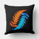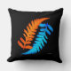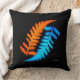 Electric Blue Fiery Orange Japanese Painted Ferns Throw Pillow