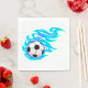 Electric Blue Flaming Soccer Ball Sports Napkins