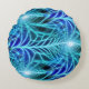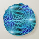 Electric Blue Luminous Fractal Repeating Pattern Round Pillow