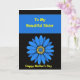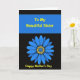 This card features a deep blue rectangle across the top, with a dashed white line along its lower edge like a stitched border. Centered inside that blue area, the words “To My Beautiful Sister” appear in bright yellow lettering that feels warm and affectionate ❤️. Below the header, the background turns a rich black, letting the main image stand out like it’s lit from within. In the middle sits a large stylized daisy with glowing blue petals shaded with soft gradients, giving it a gently sculpted look. The flower’s yellow center has small blue decorative markings, adding a sweet, intimate touch, like a quiet shared glance between close family members 🌼. Near the bottom, “Happy Mother’s Day” is placed in the same bright yellow, stretching across the lower area against the dark background. The blue petals fan outward evenly around the golden center, framed by the black field and the blue header above.
