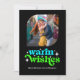 Electric Blue & Neon Green Retro Christmas Photo Holiday Card