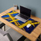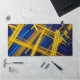 Electric Blue Yellow Glowing Futuristic Line Art Desk Mat