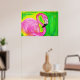 A happy, bright and cheerful artwork celebrating the popular tropical flamingo in hues of yellow, green and pink.