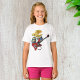 An electric guitar in red with a drum set behind it. This design looks really effective on this Girls T-Shirt