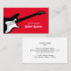 Electric guitar lessons business card template. Professional visiting cards with rock guitar instrument logo. Modern visit cards for guitarist giving private lessons, performer, shop, store, new company, studio boss, employees, DJ's, music producer, singer, music band, music teacher, instructor, musician etc. Choose between different paper qualities and thicknesses. Standard size. Red or custom background color.