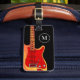Cool Fire flame pattern Electric guitar art illustration in red, orange, yellow and black with personalized orange and black initial monogram on the front and contact details on the back. This easy to use template creates the perfect gift for a guitarist, musician and music lovers. Any guitar player will tell you that you can never have to many guitars. This cool modern musical instrument design celebrates the music energy of this wonderful musical instrument. Original artwork by artist Catherine Sweetman