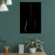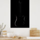 An elegant minimalist representation of an electric guitar captured as a dramatic silhouette against a stark black background. This artistic interpretation reduces the instrument to its essential form, showcasing the classic double-cutaway body shape that has defined rock and roll for decades. The subtle lighting creates gentle curves along the guitar's edges, revealing just enough detail to suggest the control knobs and pickups while maintaining the mysterious, shadowy aesthetic. This style of photography transforms a familiar musical instrument into abstract art, emphasizing the guitar's iconic shape that has become a universal symbol of modern music, rebellion, and creative expression across countless genres and generations of musicians.