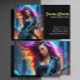 This eye-catching business card features a woman with vibrant purple hair holding a guitar in a city setting. The design is perfect for a guitar teacher looking to stand out and attract potential students. The image conveys a sense of creativity and musicality, making it ideal for anyone in the music education industry.