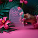 Celebrate your marriage with a splash of neon! Our electric love neon wedding arch shape acrylic invitation is perfect for couples seeking a bold nightlife vibe, with a modern retro-classy aesthetic. Inspired by the beauty and trendiness of neon signs, we’ve created glowing pink neon-style sign typography, paired with illuminating electric green and aqua tropical palm leafy greenery and pink hibiscus. A moody dark blue backdrop is paired with electric accents of pink, green & aqua to create this trendy, electrifying design-savvy wedding suite collection. All of the watercolor artwork is hand-painted by us with custom typographic effects to create our unique memorable neon wedding theme design.