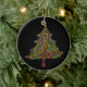 Graphic illustration of a neon, electric, decorated Christmas Tree. This is the perfect ornament to brighten the holidays. You can customize a personal message on the back of this ornament for someone special.