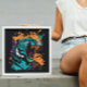 Fun bright artwork that really captures the mood I’m going for! Pop art with cyberpunk energy. A little sweet but also spicy. This art is the perfect size and vibe for our art gallery wall. The printing looks great, high quality with vibrant colors! I went with the semi-gloss finish, which adds a little extra shine and thickness to the print making it excellent for high-traffic areas like the staircase wall.