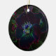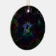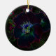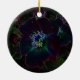 What a dramatic pattern this holiday ornament has! This electric rose is outlined in deep, rich colors of red, blue, magenta, yellow, green and purple. The black background adds to the magical, mysterious feeling. Won't this look beautiful hanging from your Christmas tree?