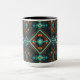 A bright, repeating diamond pattern with turquoise, red, blue and orange accents, creating an electric visual effect.