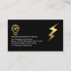 Overleaf, a gold lightning bolt is at the upper corner. Card details are over on the left with a gold bulb logo at the top. This is followed by the business name, its contact details and a slogan caption option which you can change.