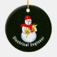 Electrical engineer editable text with a snowman holding lightning bolts is a humorous electrical engineering design for engineers at birthdays, graduations and holidays.