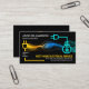 A creative electrical circuit draws power from your prestigious name and job title at the top. An electrical lightning zaps the bulb to highlight the yellow business name and contact details. To the left of this is a slogan caption to publicize your business ; Change the caption remarks "call me for a free quotation" to suit your own needs.