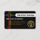 At the top of the card is a white tab that contains your business name. The vertical wiring lines on the left support your prestigious name with the contact details just underneath. At the lower right corner is a gold bulb logo you can use.