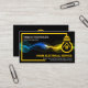 A yellow electrical circuit frame is powered by an electrical lightning that zaps thru a home bulb. Just below the bulb is the business name and the contact details. Towards the upper left corner of the card lies your prestigious name and job title.
