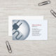 An enlarged grey glossy icon of a power cord forms the main image on this electrician business card. Your name and details appear on the right, over a simple white background. Customize this card immediately with your name and details.