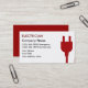 Electrician business cards with modern design, image of an electrical plug symbol, and great text layout you can customize online. This electrician business card is designed for themes related to electrical contractor, electric repair, home wiring, and handyman.