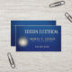This simple and modern business card design features an illustration of a hanging old fashioned lightbulb that is glowing with light against a striking blue background. Print your name and business information in shades of golden yellow using the easy, provided templates. The back side has templates for more custom information about your business, if desired. The color and clever illustration is sure to make your card stand out from the rest!