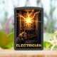 This powerful design immediately draws attention to the intensity of high-stakes electrical work. The image focuses on a gloved hand holding a tool, making contact with an intricate, exposed electrical panel or fuse box. A brilliant, concentrated yellow arc of electricity erupts from the contact point, creating a dramatic flash of light that highlights the detail of the surrounding wiring and connections. The dark, industrial background and the bright, volatile energy perfectly capture the danger and the skilled control an electrician must possess. The word "ELECTRICIAN" is proudly displayed in a bold, golden font below the scene. This lighter is an excellent statement piece and a tribute to the professional's ability to expertly troubleshoot and manage raw electrical power.