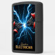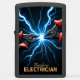 This crisp, dynamic design highlights the essential tools of the trade and the power they manage. The image features a close-up of two electrician's tools with contrasting red handles, brought together in a symmetrical arrangement. At the point of contact, a brilliant, intense blue electrical spark erupts, symbolizing the focused energy and instantaneous power an electrician must control. The clean, dark background throws the tools and the vibrant arc into sharp relief, emphasizing the precision and high-stakes nature of the work. The bold, golden text "ELECTRICIAN" at the bottom makes a strong professional statement. This lighter is an excellent, striking gift for any professional, celebrating their essential gear and their mastery over electrical forces.